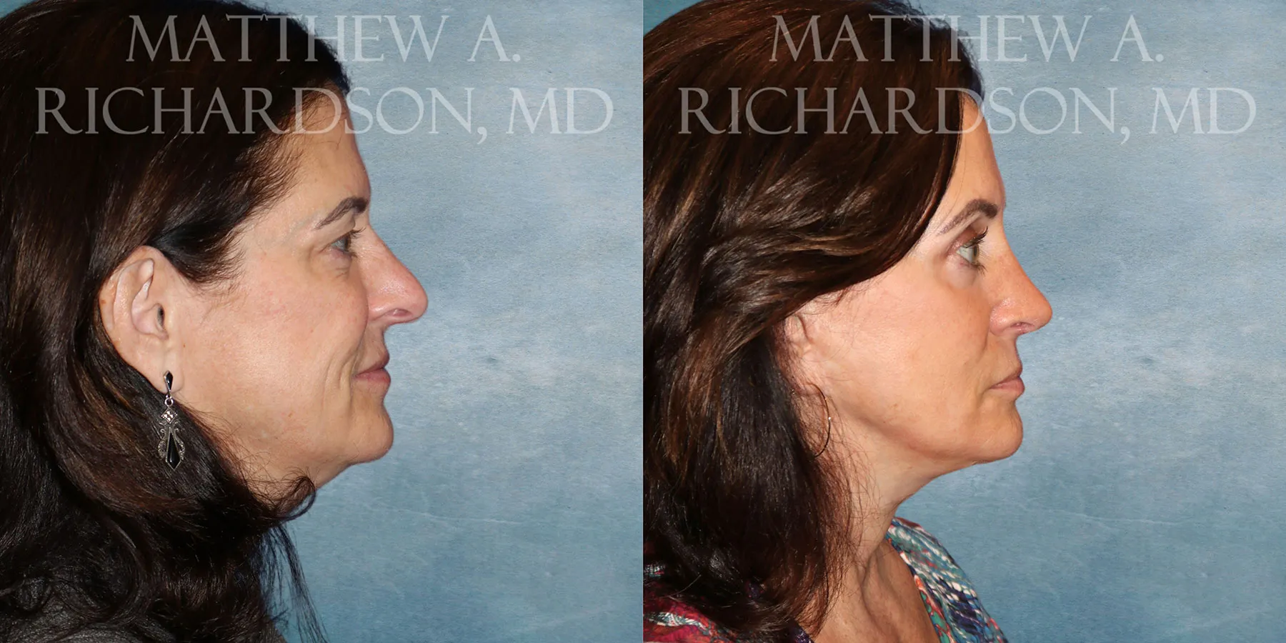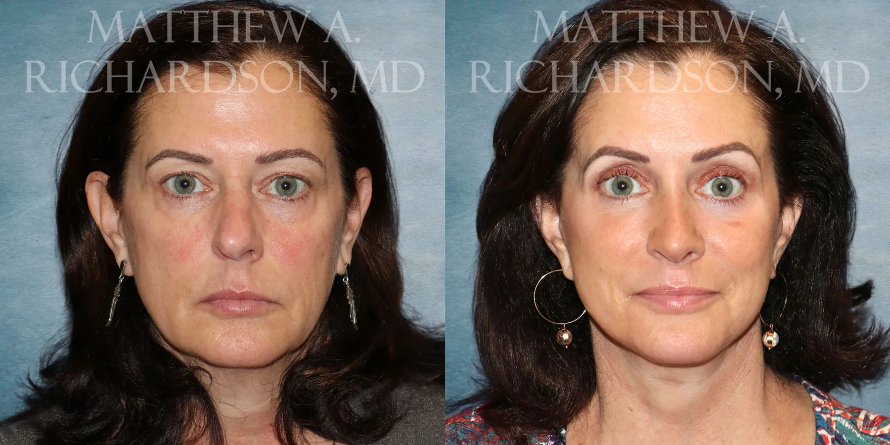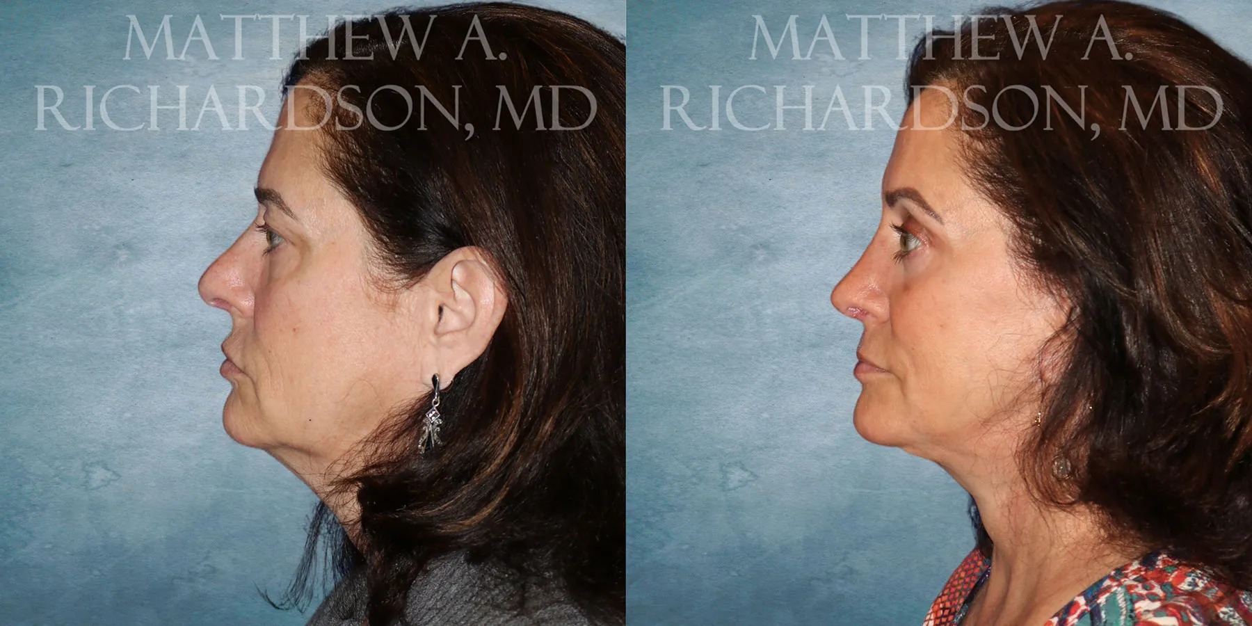 Facelift results at 4 months post-op. Patient also had upper and lower eyelid surgery with laser skin resurfacing to the lower eyelid skin and around the mouth.