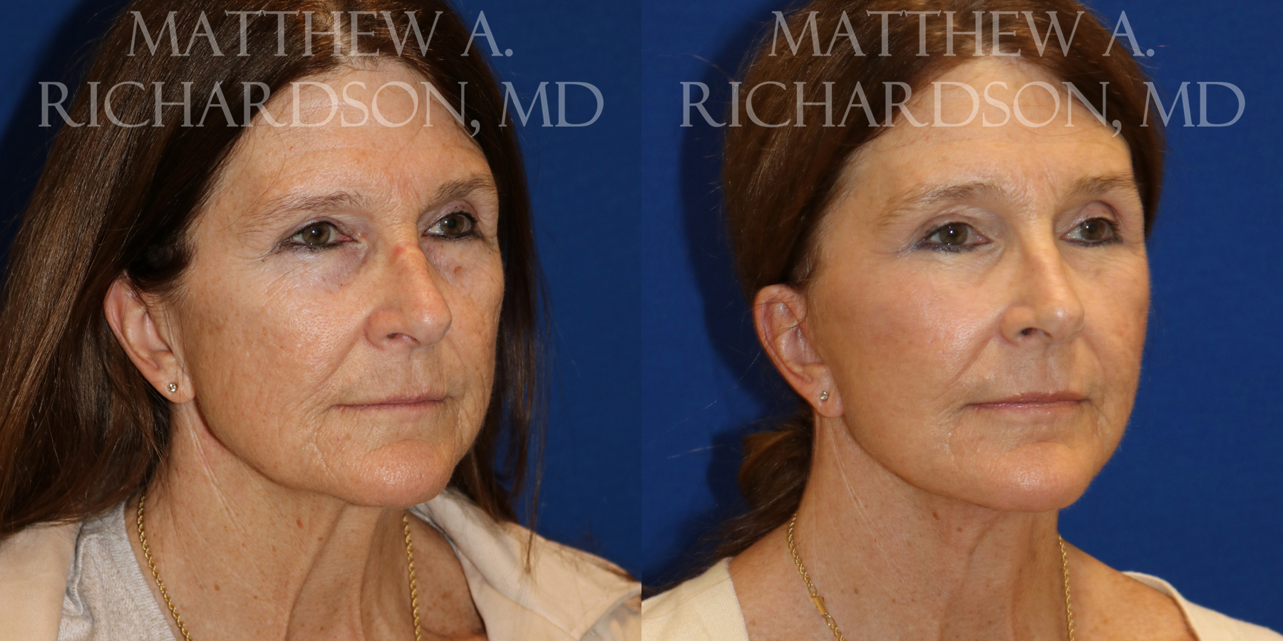 Patient who underwent a facelift, fat transfer, blepharoplasty and browlift. Photos are 3 months post-op.