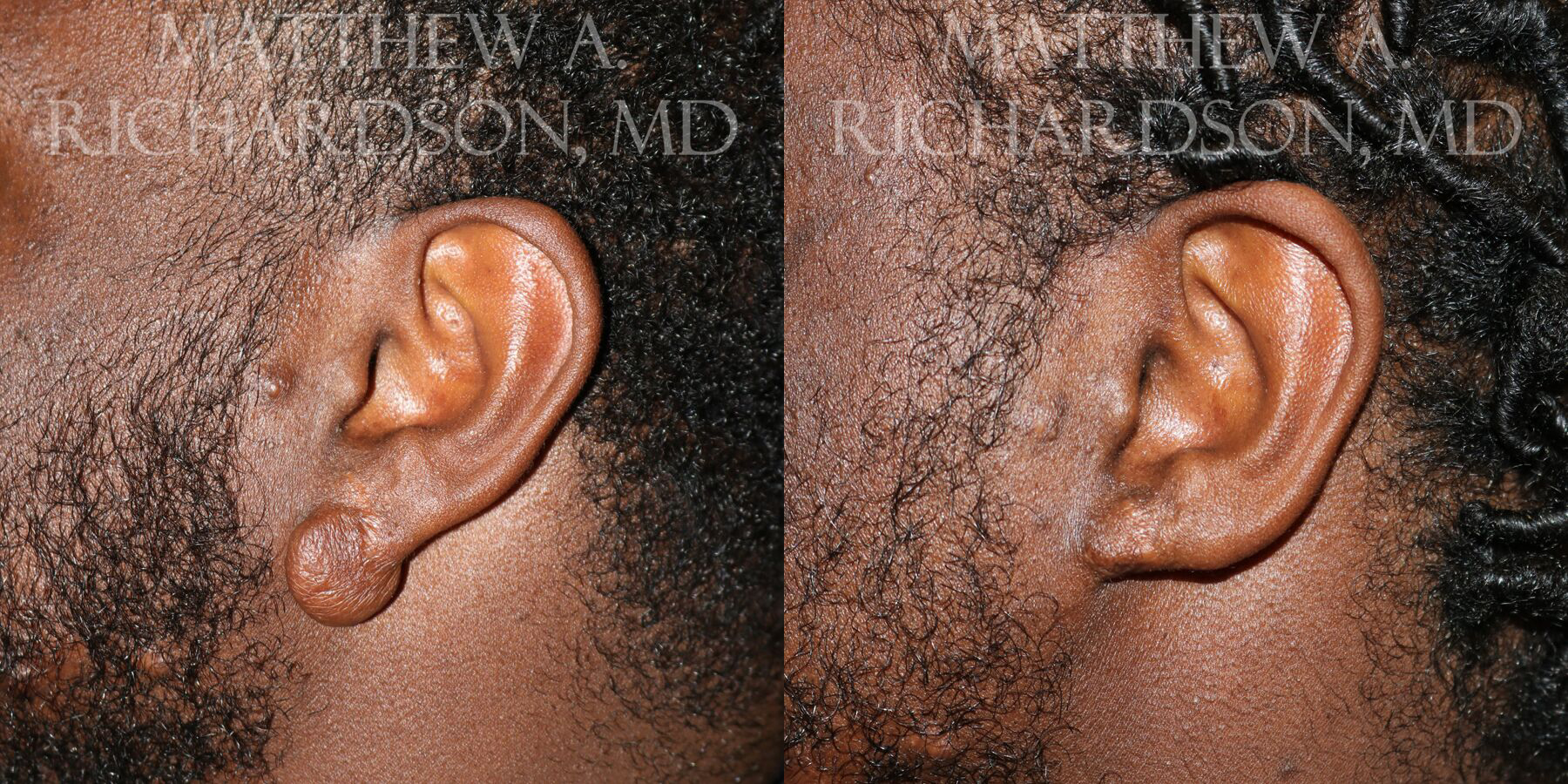 Patient underwent keloid removal. Results are shown approximately 5 months after the procedure.