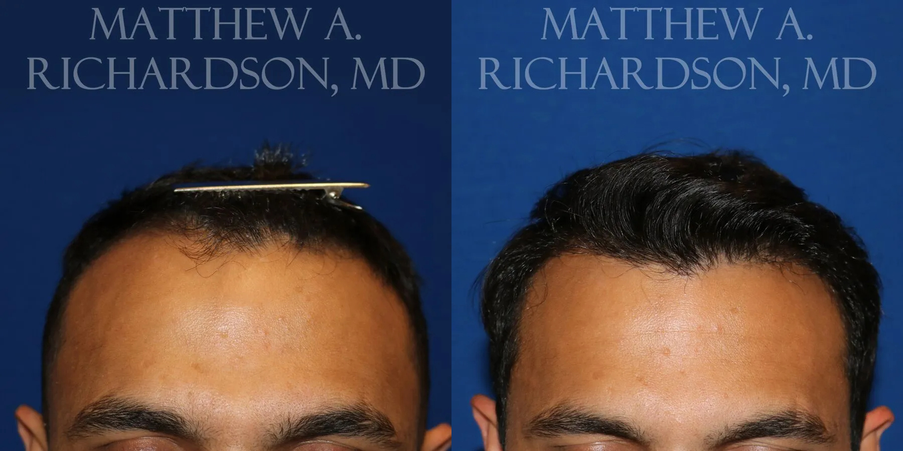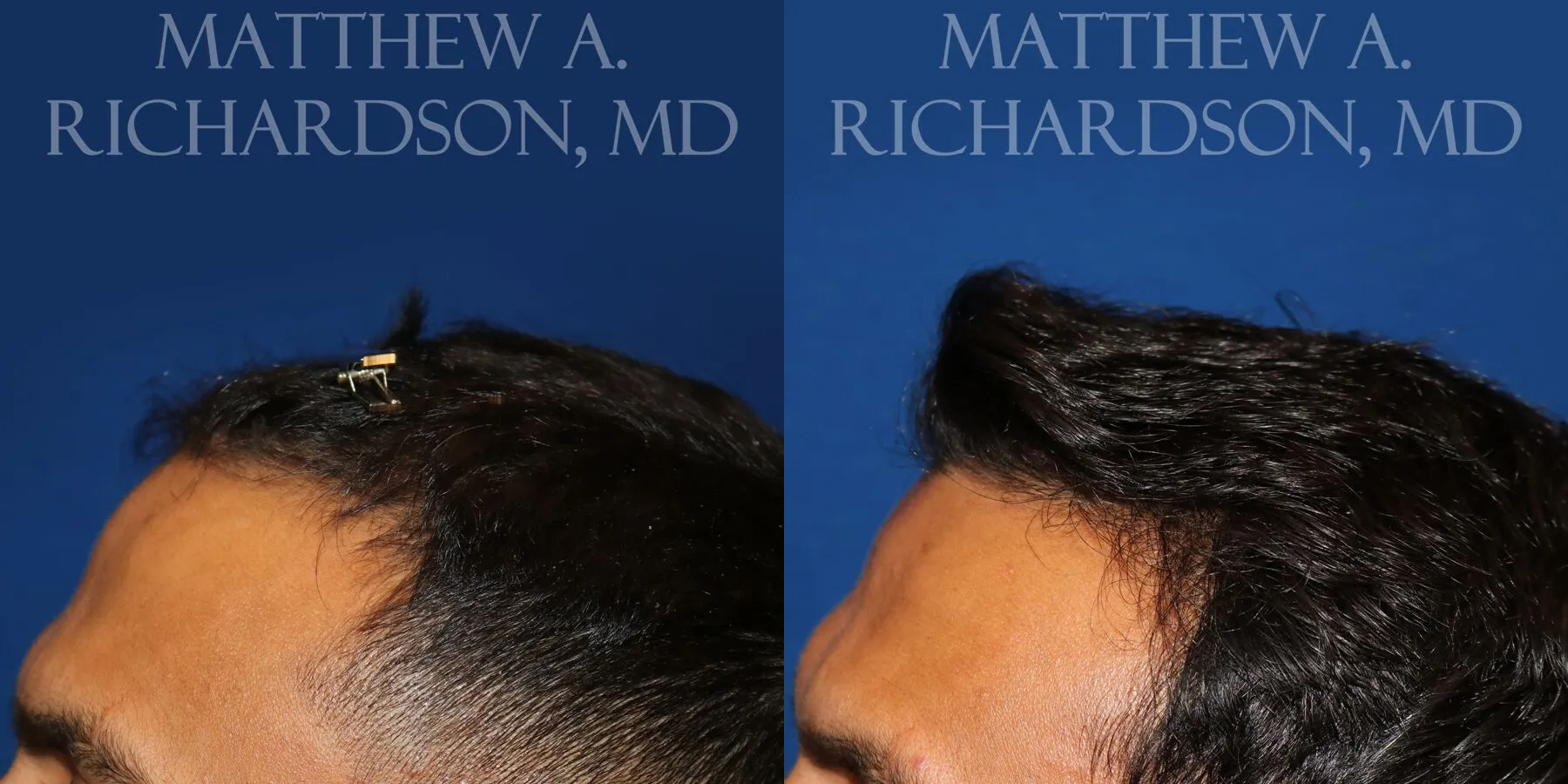 Patient who underwent a hair transplant. Results are shown approximately 6 months after the procedure.