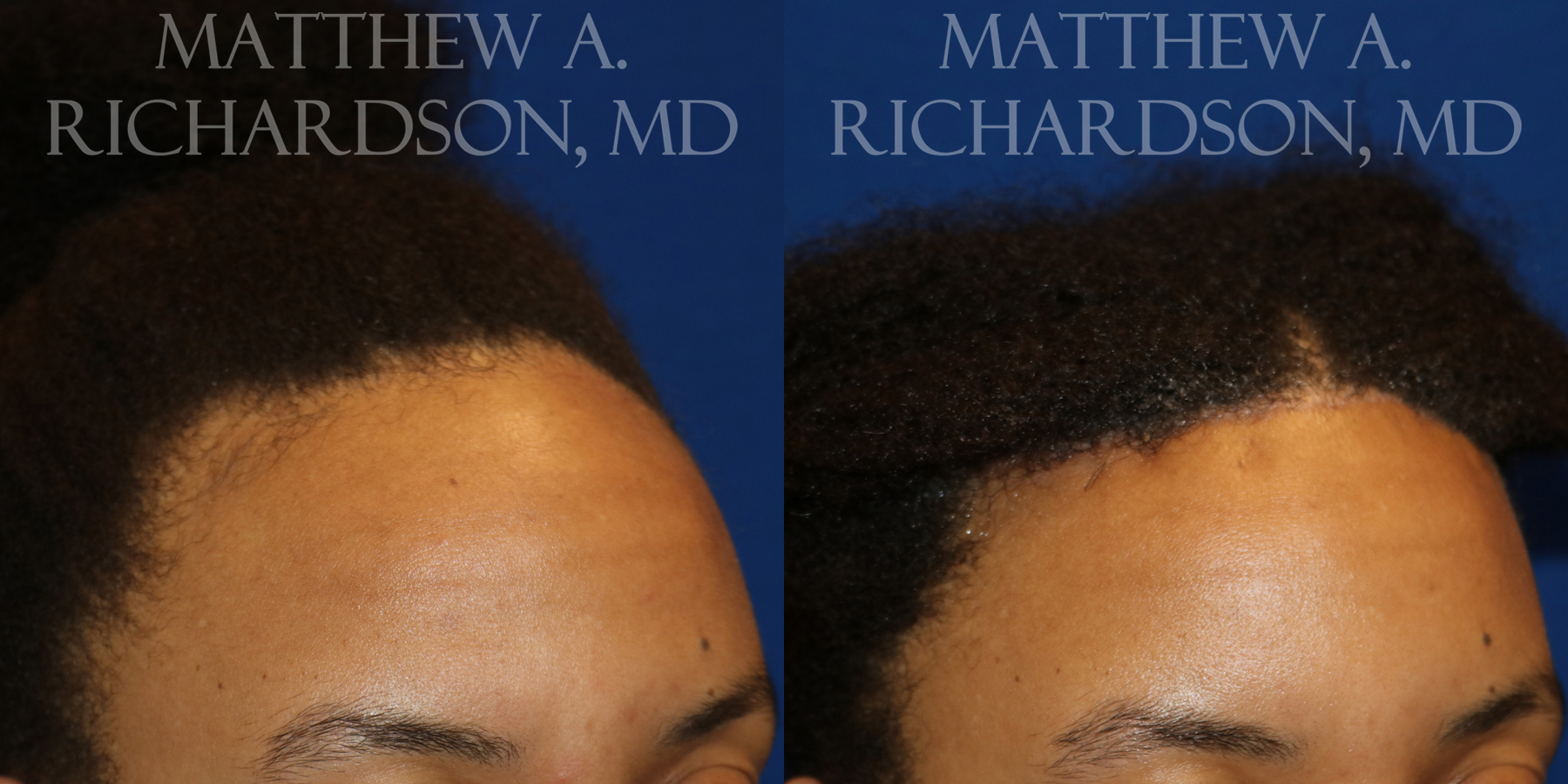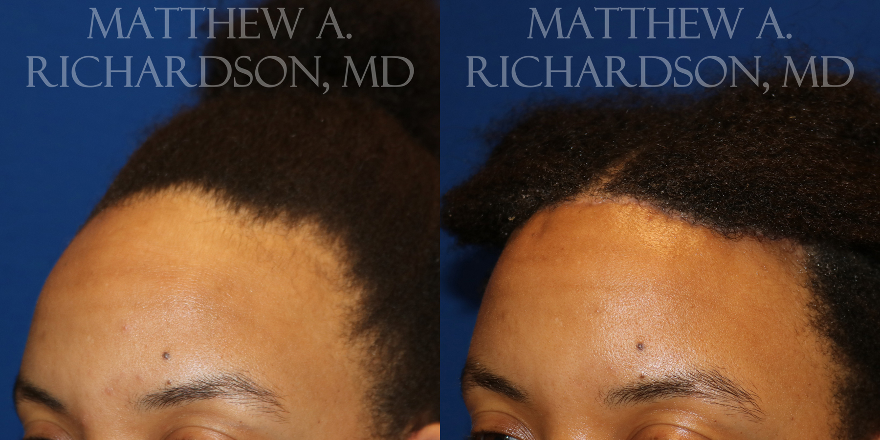 ONE WEEK POSTOP photos of a patient who underwent forehead reduction surgery.