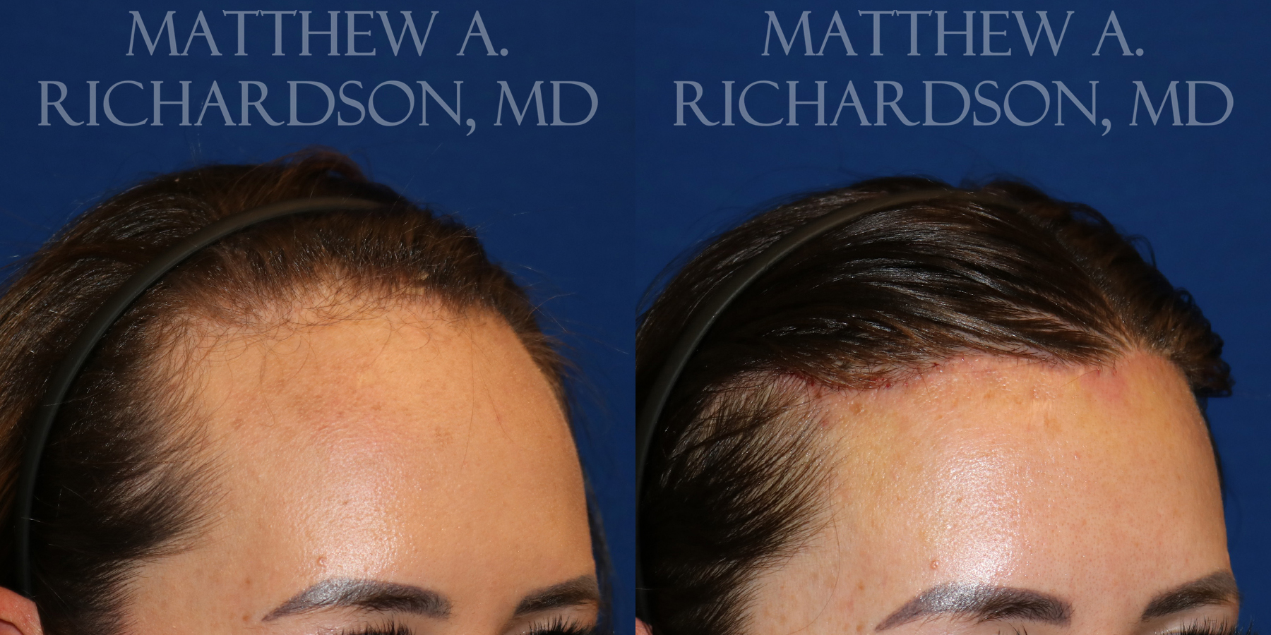 ONE WEEK POSTOP patient who underwent a forehead reduction surgery. Pink color and mild swelling will resolve with time.