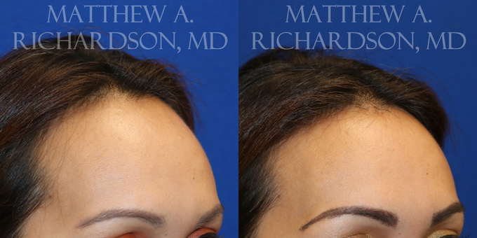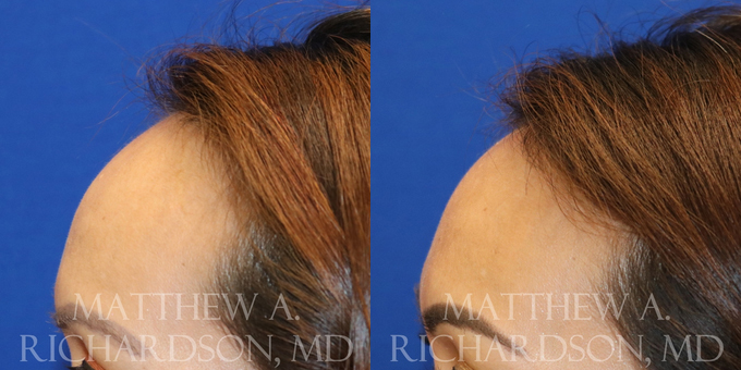 2 month postoperative views of a forehead reduction surgery in an Asian patient. Hairline lowered 2.1 cm in a single stage procedure.
