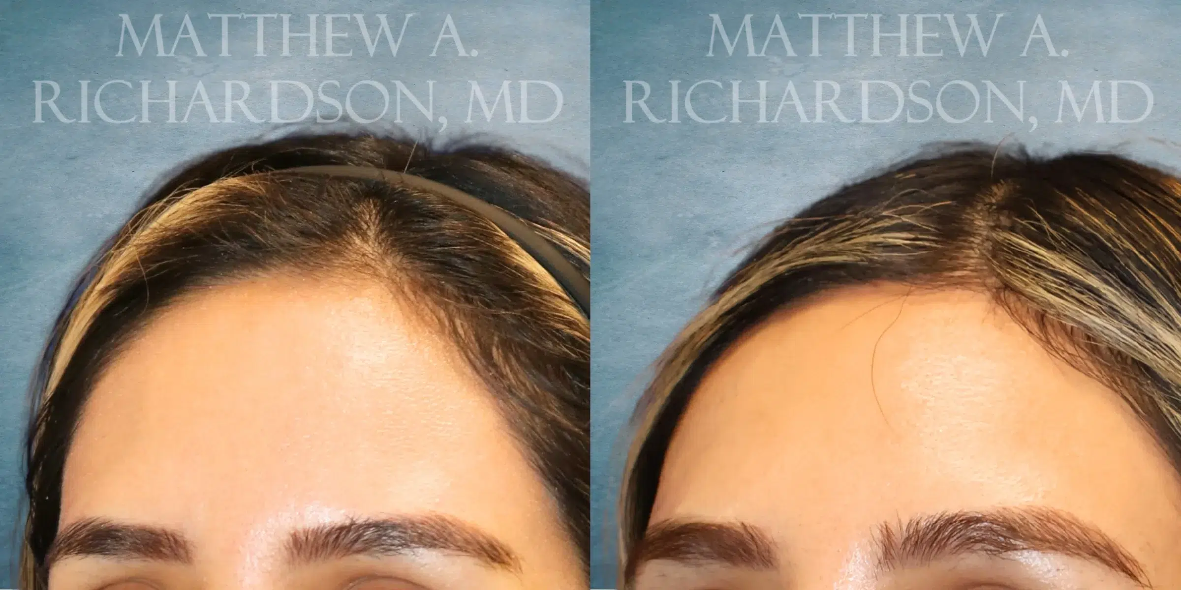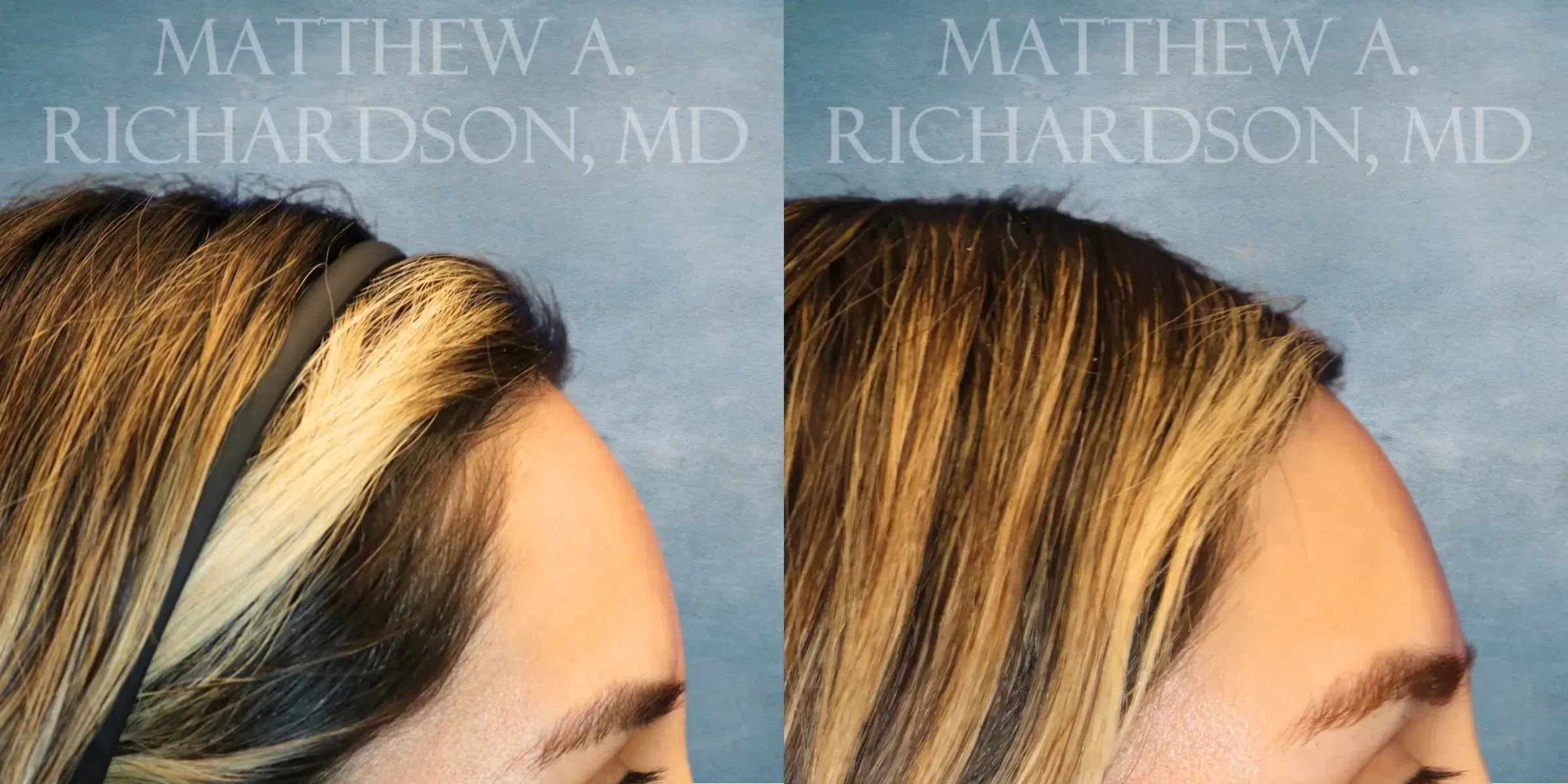 1-year postoperative results of a patient who underwent a forehead reduction. Procedure performed by Dr. Matthew Richardson, MD.