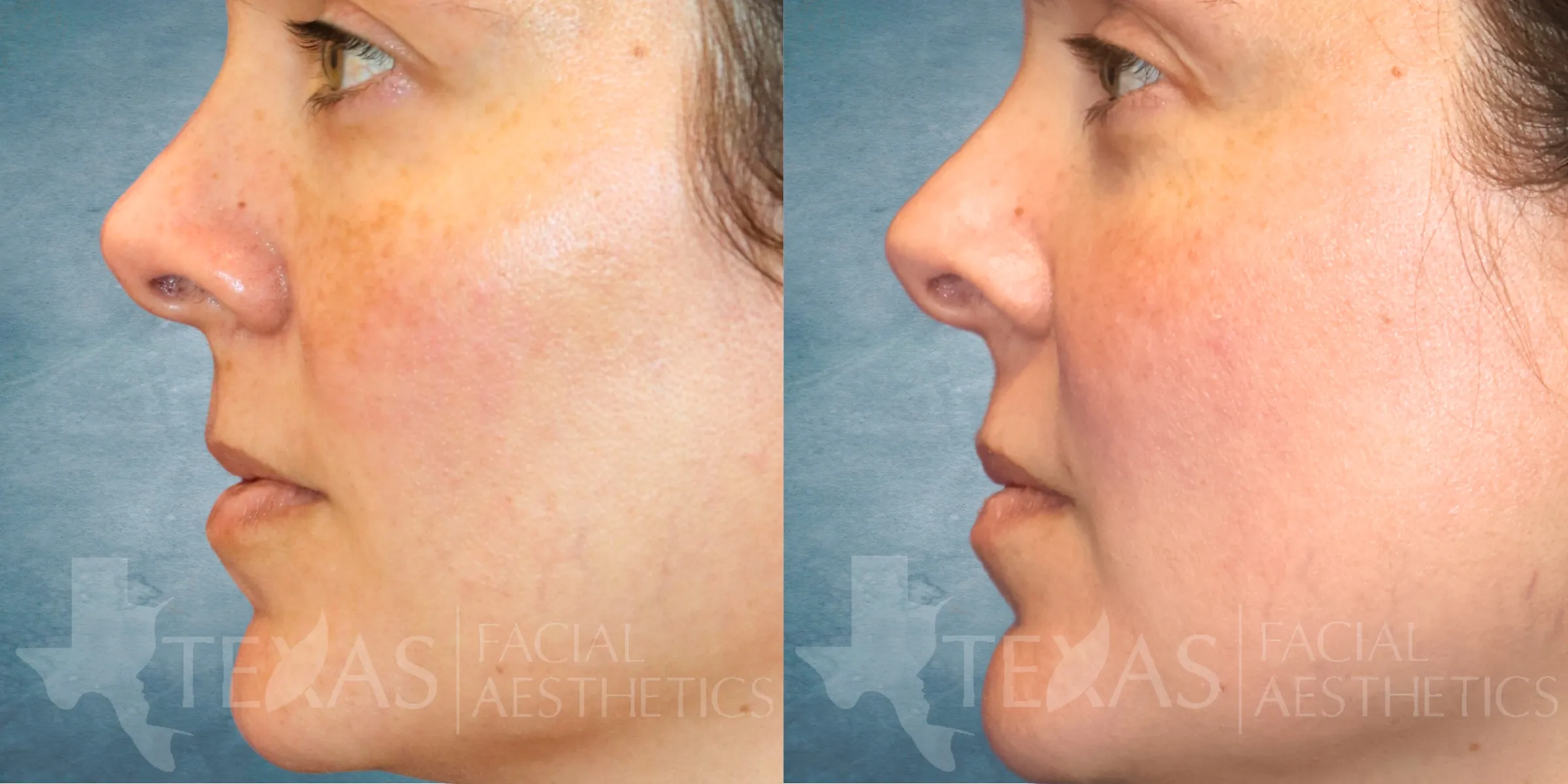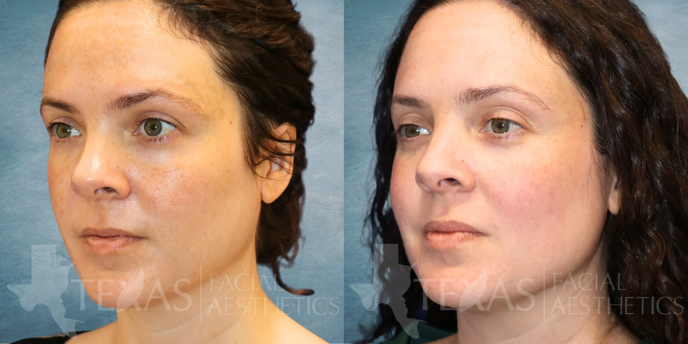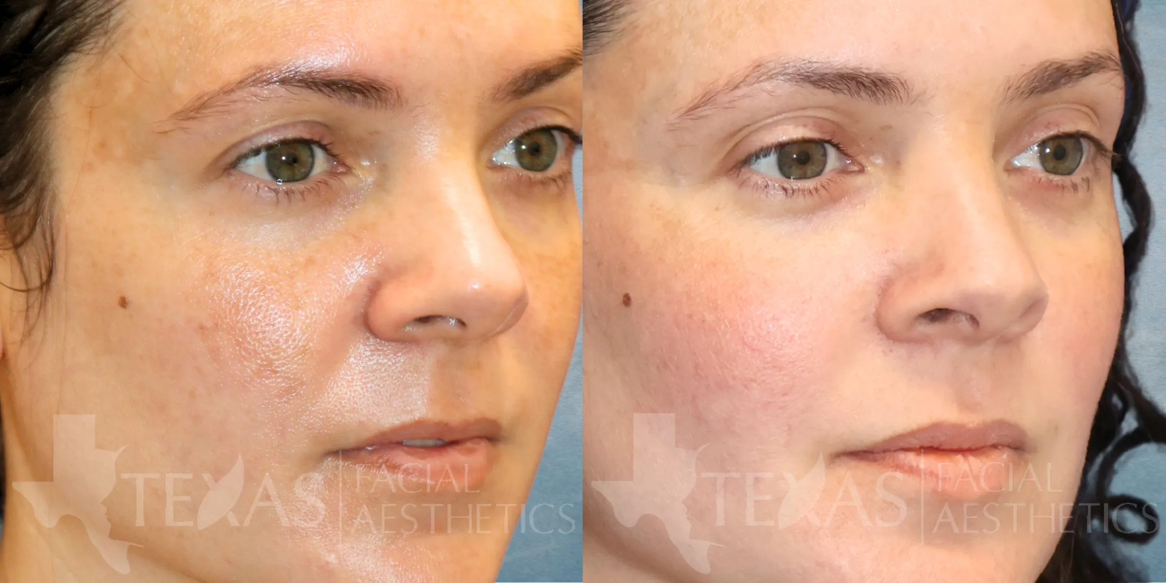 This patient completed a customized series of Nano Laser Peels, VI Peels®, Enlighten Peels, and chemical peels, paired with a professional at-home skincare regimen using products from our office to improve tone, texture, and overall skin clarity.