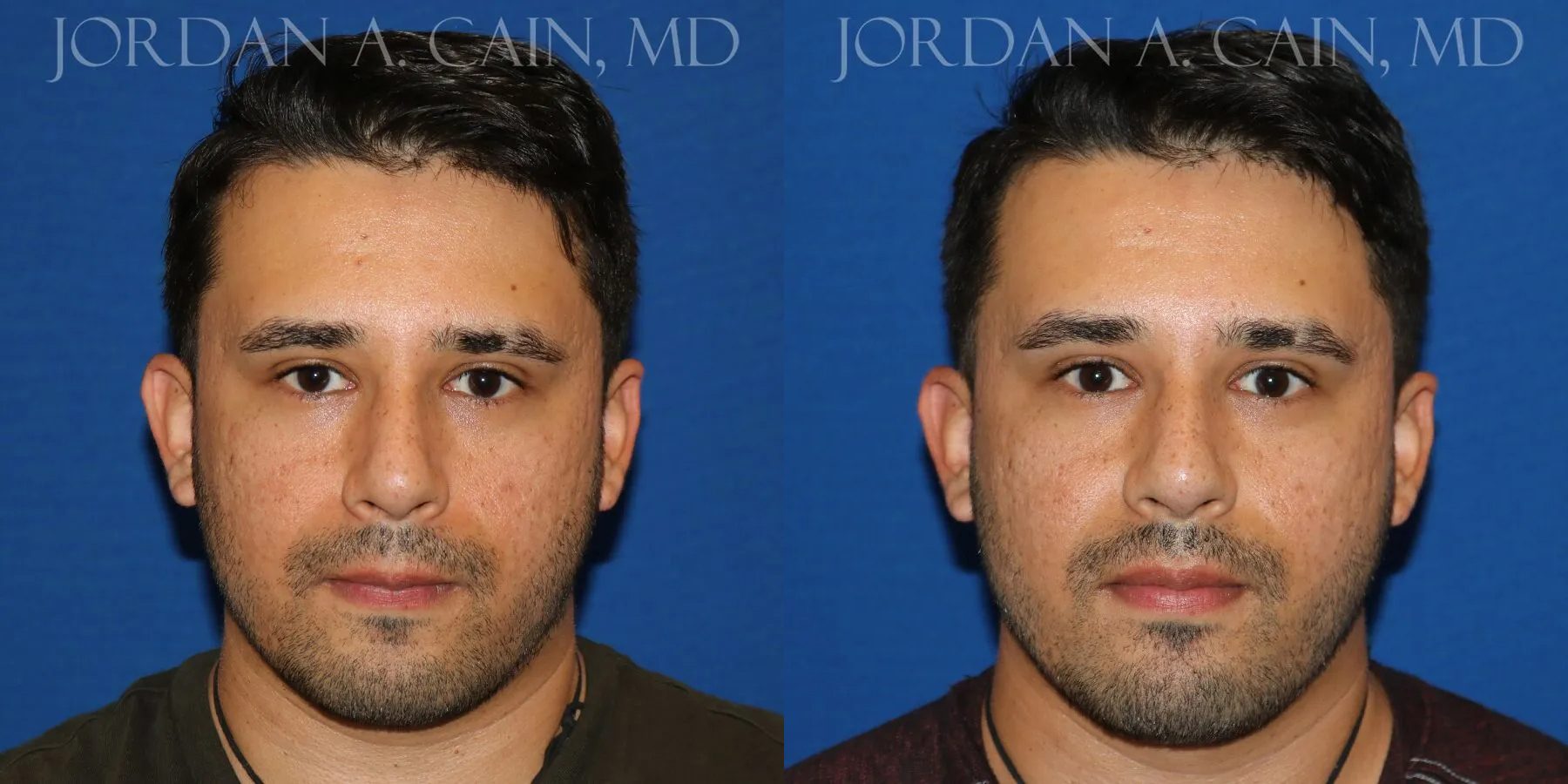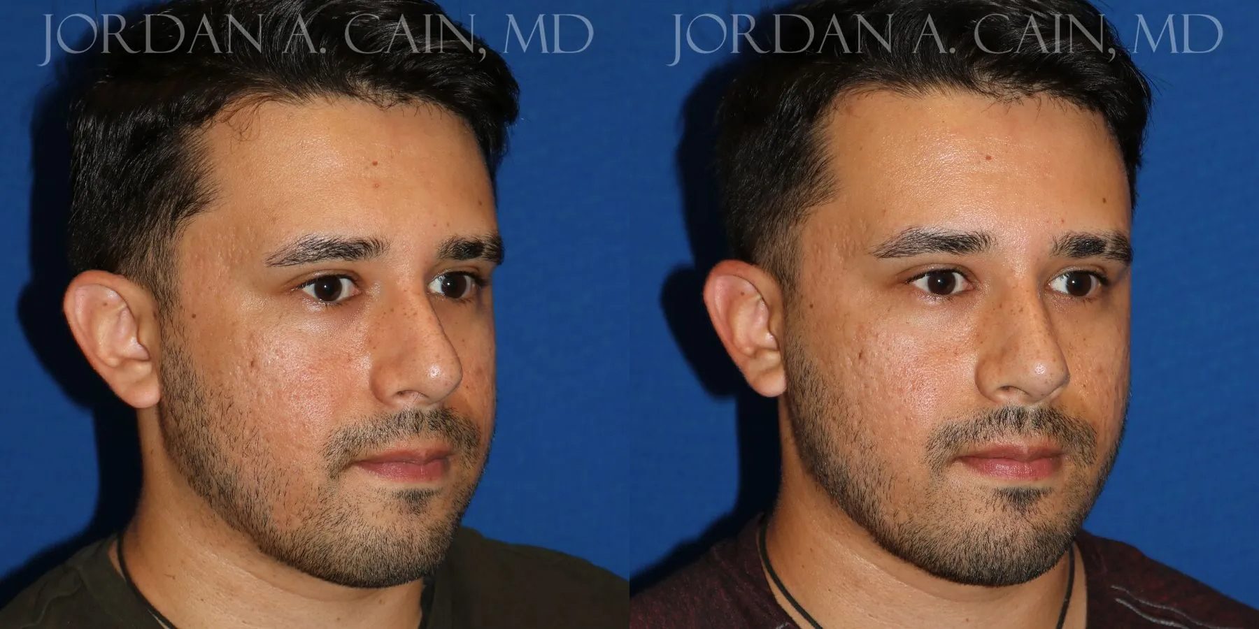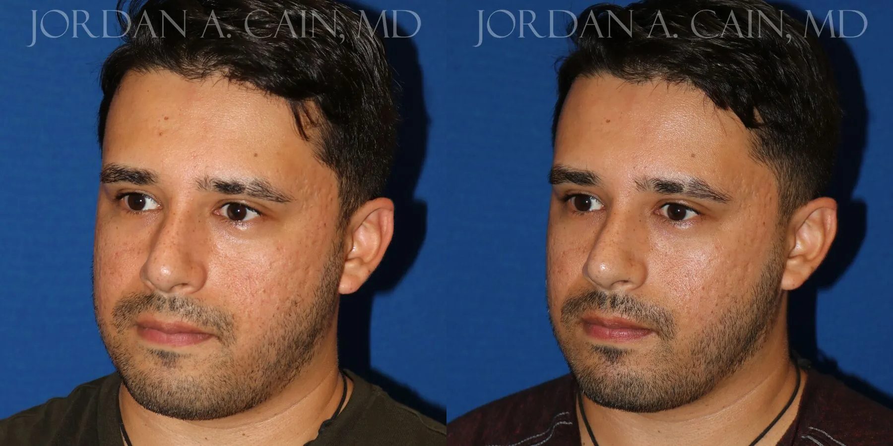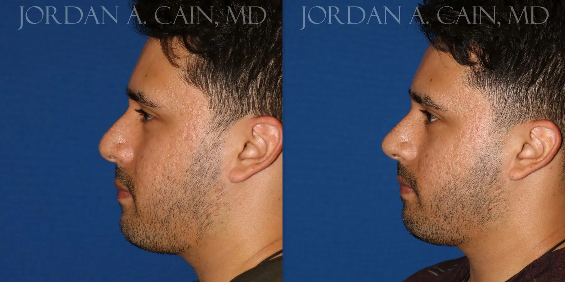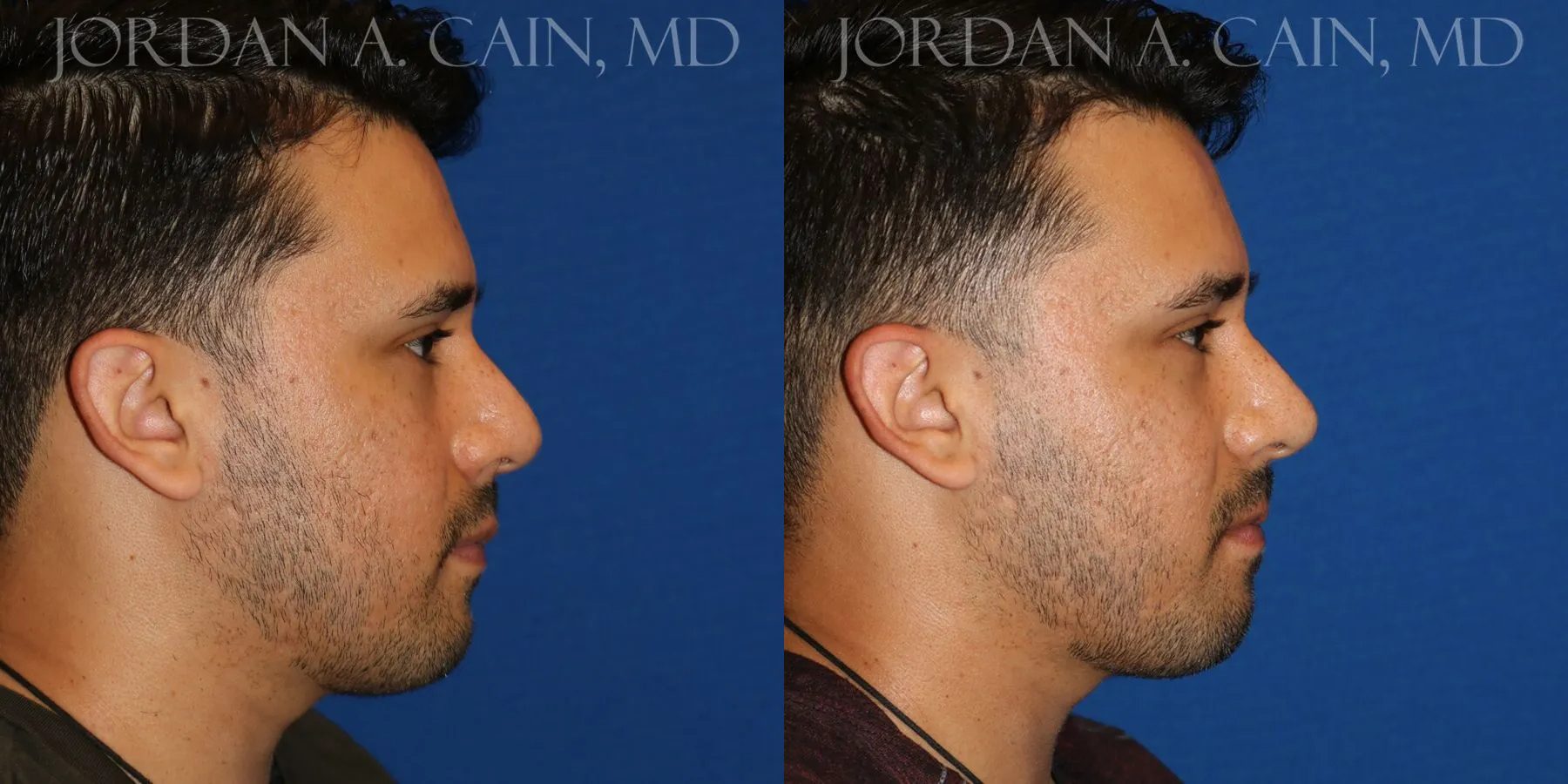 Patient desired increased projection and definition of the nasal tip without surgery. Filler was used for a non-surgical nose job, and results are shown approximately 2 weeks after the procedure.