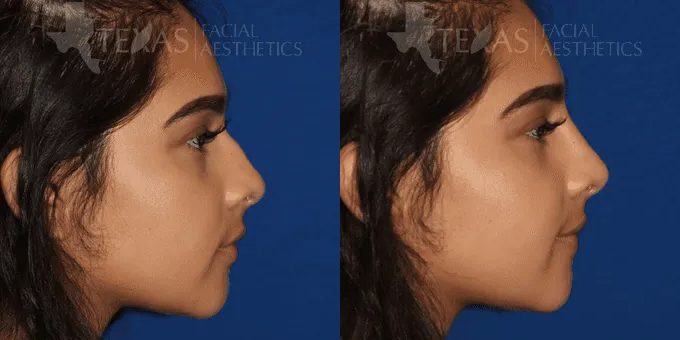 Young lady who desired nasal correction for a dorsal hump and a slightly crooked nose without surgery. Vollure was used in this case.