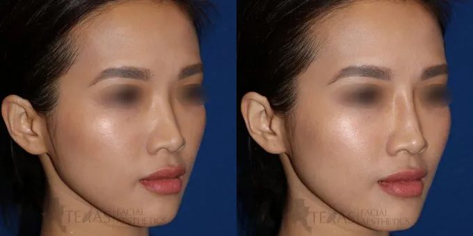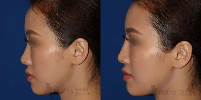 Young woman who desired augmentation of the nasal bridge to improve definition without altering the nasal tip. Vollure was used in this case.