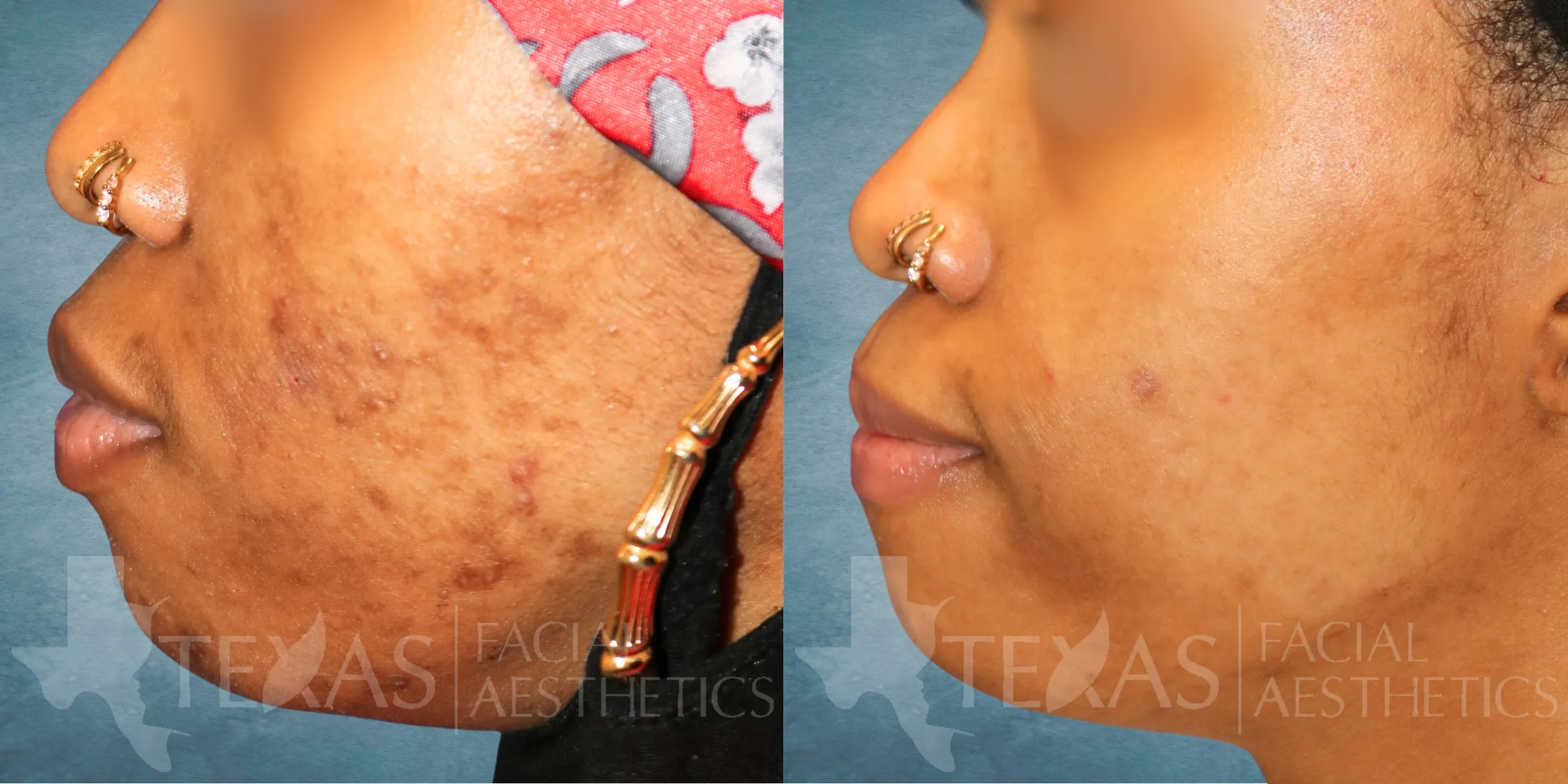 This patient completed a series of VI Peels® paired with a regimented at-home skincare routine using products from our office, resulting in improved tone and overall skin clarity.